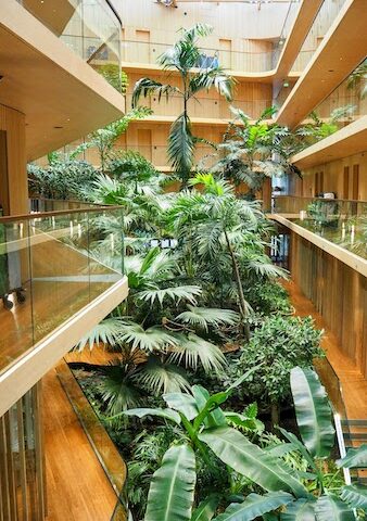 ホテルは、宿泊客がいかに快適に過ごせるかを追求するサービス業だ。しかし、オランダ、アムステルダムにある「ホテル・ジャカルタ(Hotel Jakarta)」には各部屋や共有部分にもエアコンがない。しかも、エネルギーを自給自足するエネルギーニュートラルを実現している。実際に泊まってみると、部屋内は寒くも暑くもなく快適そのもの。一歩ホテルの中に入ると、5 階建ての建物にジャングルのような庭園が広がり、まるで熱帯植物園にいるようだ。実はこの庭園も室内温度を安定させる大きな役割を持っている。内装は木や竹をふんだんに使い、自然の力を最大限に使ってエネルギーを使わずに快適なホテルライフを提供する同ホテルに宿泊して、サステナブルな仕組みを取材した。